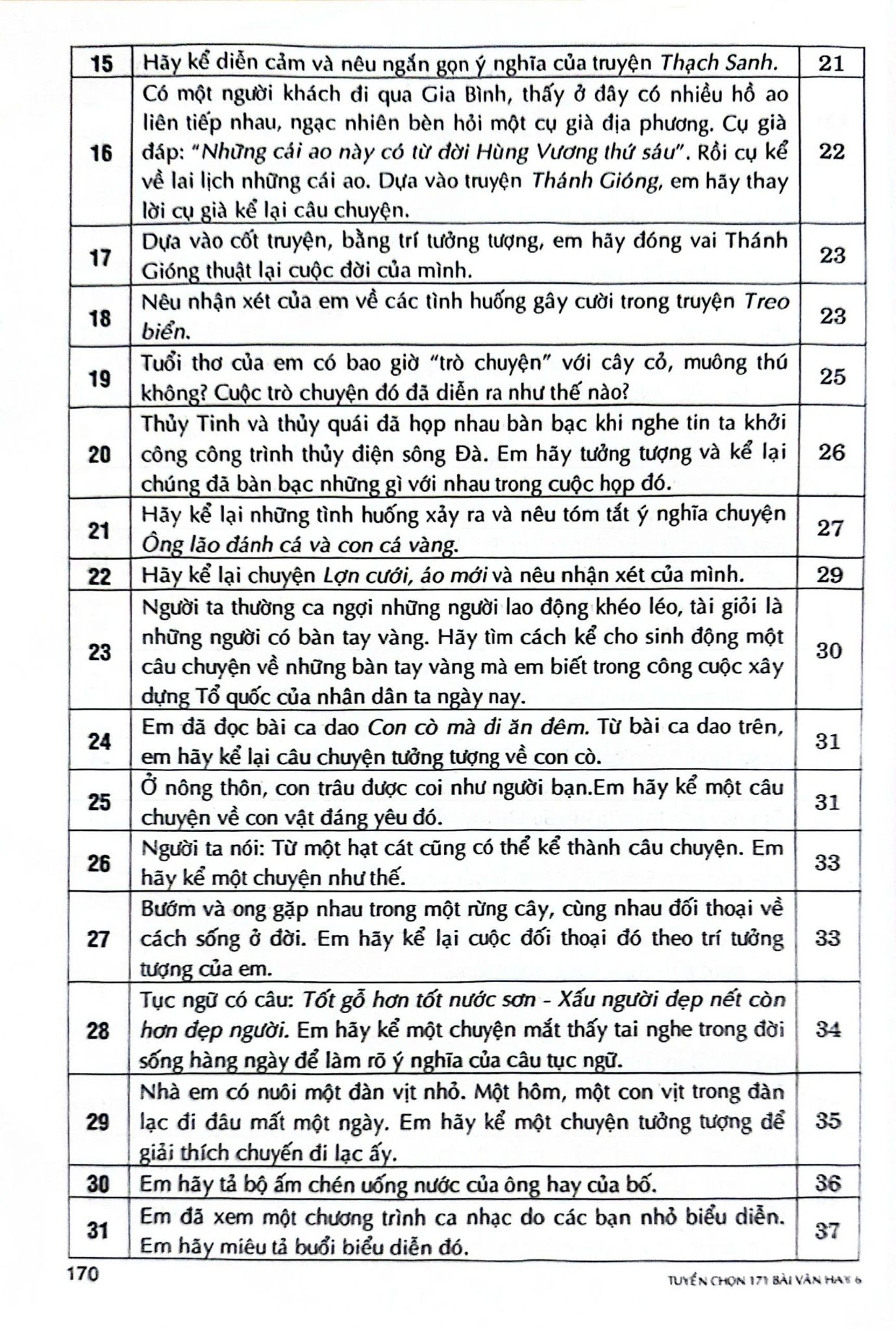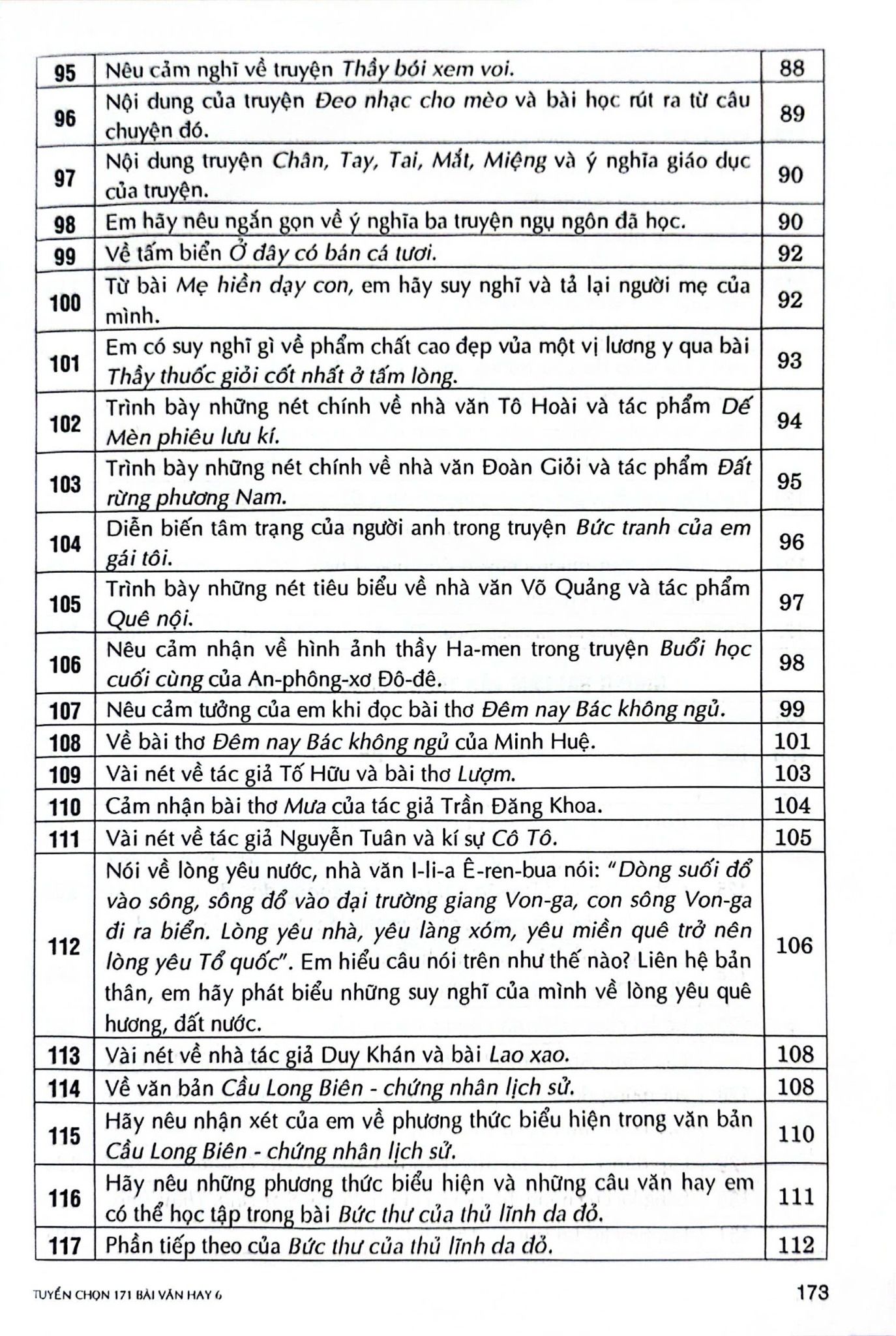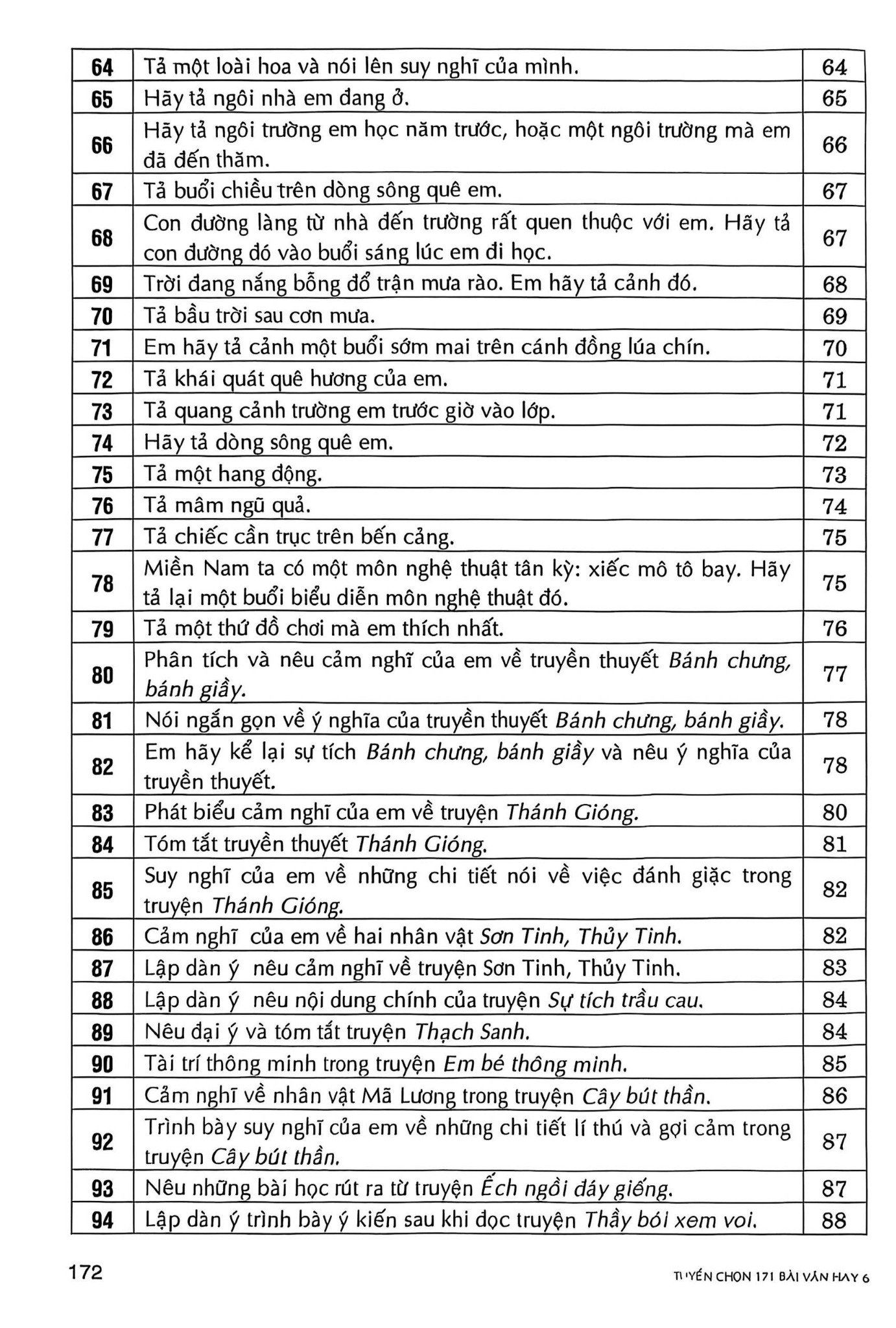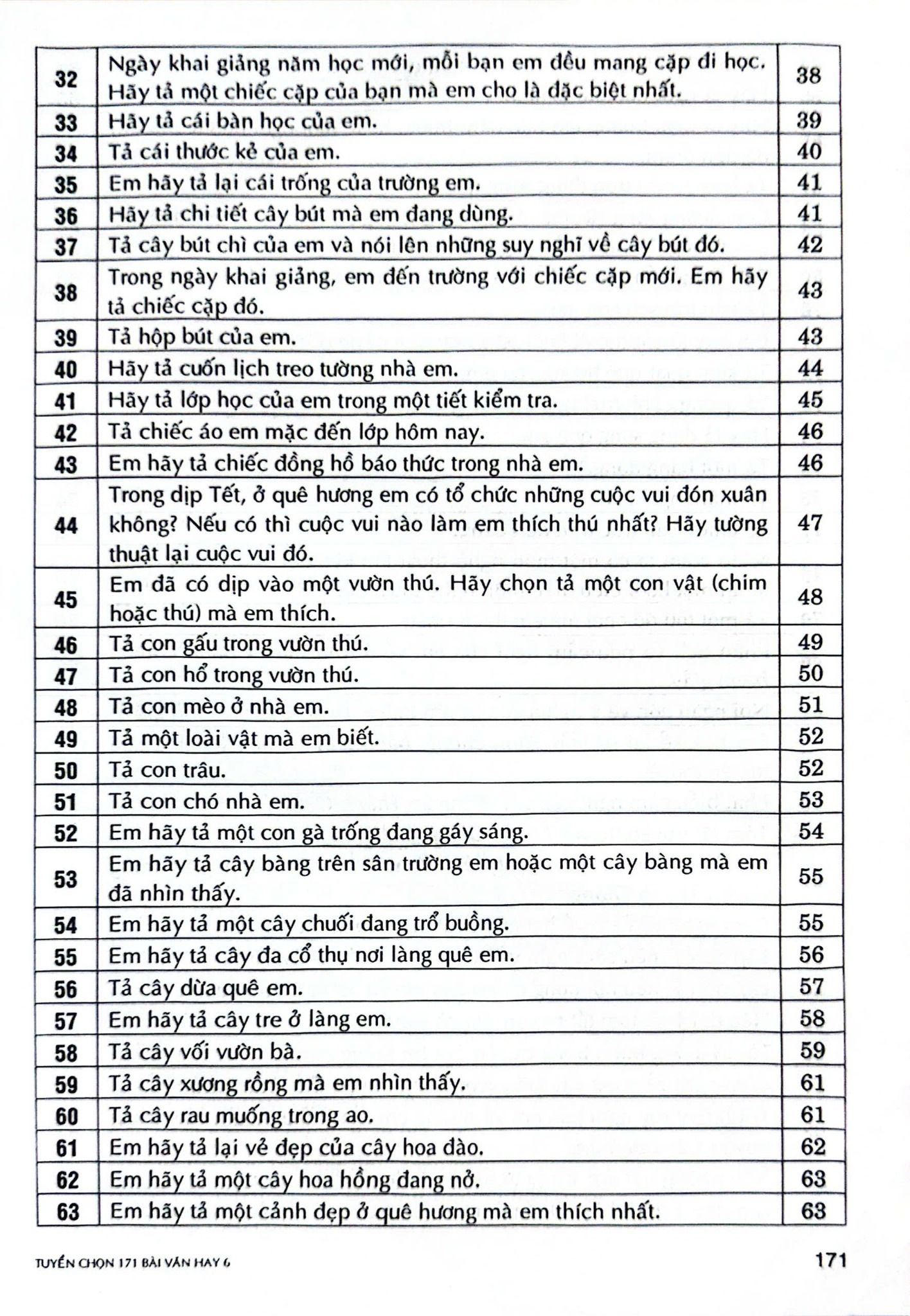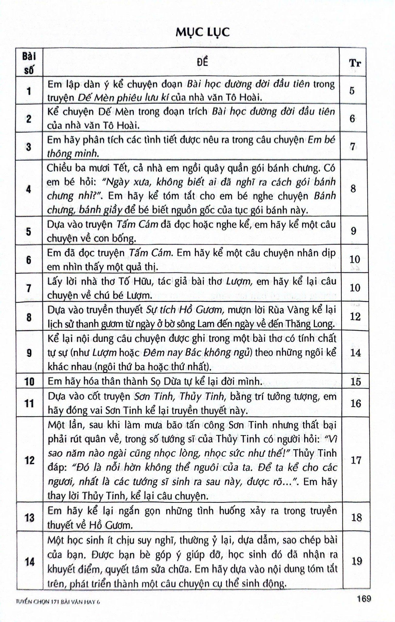 171 bài văn hay lớp 6 bao gồm các thể loại văn kể chuyện, miêu tả, viết đơn,... trong chương trình lớp 6. Bên cạnh đó, tác giả còn đưa vào các bài văn cảm nhận các tác phẩm văn học trong chương trình các em được học.